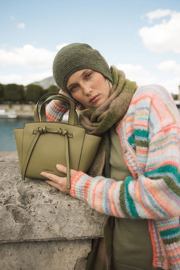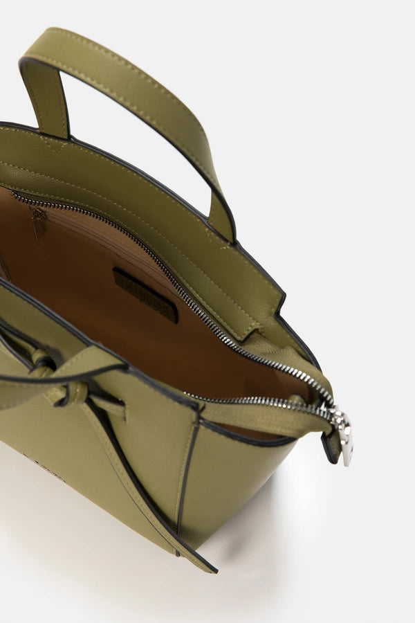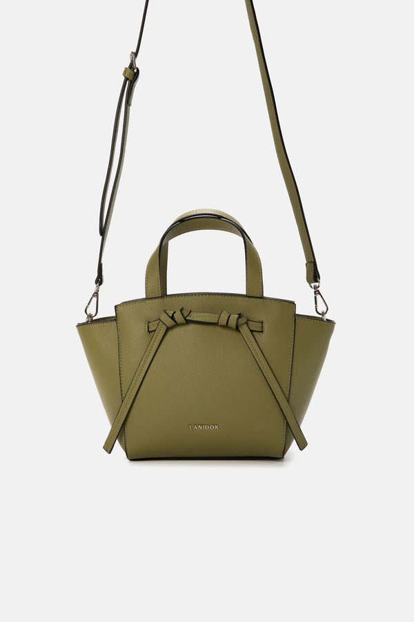 Carteira efeito pele com pormenor decorativo na frente. Alça de ombro ou mão e alça regulável. Logótipo em contraste. Forro interior. Fecho zíper.