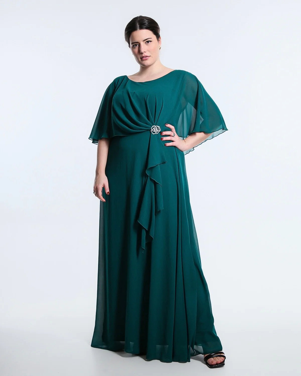 O detalhe drapeado na cintura, finalizado com um elegante alfinete prateado (removível), valoriza a silhueta de forma harmoniosa, enquanto a saia longa fluída proporciona movimento e conforto. Perfeito para casamentos, eventos formais e celebrações, o Vestido Maria Verde é a escolha ideal para quem deseja se sentir deslumbrante sem abrir mão do bem-estar.